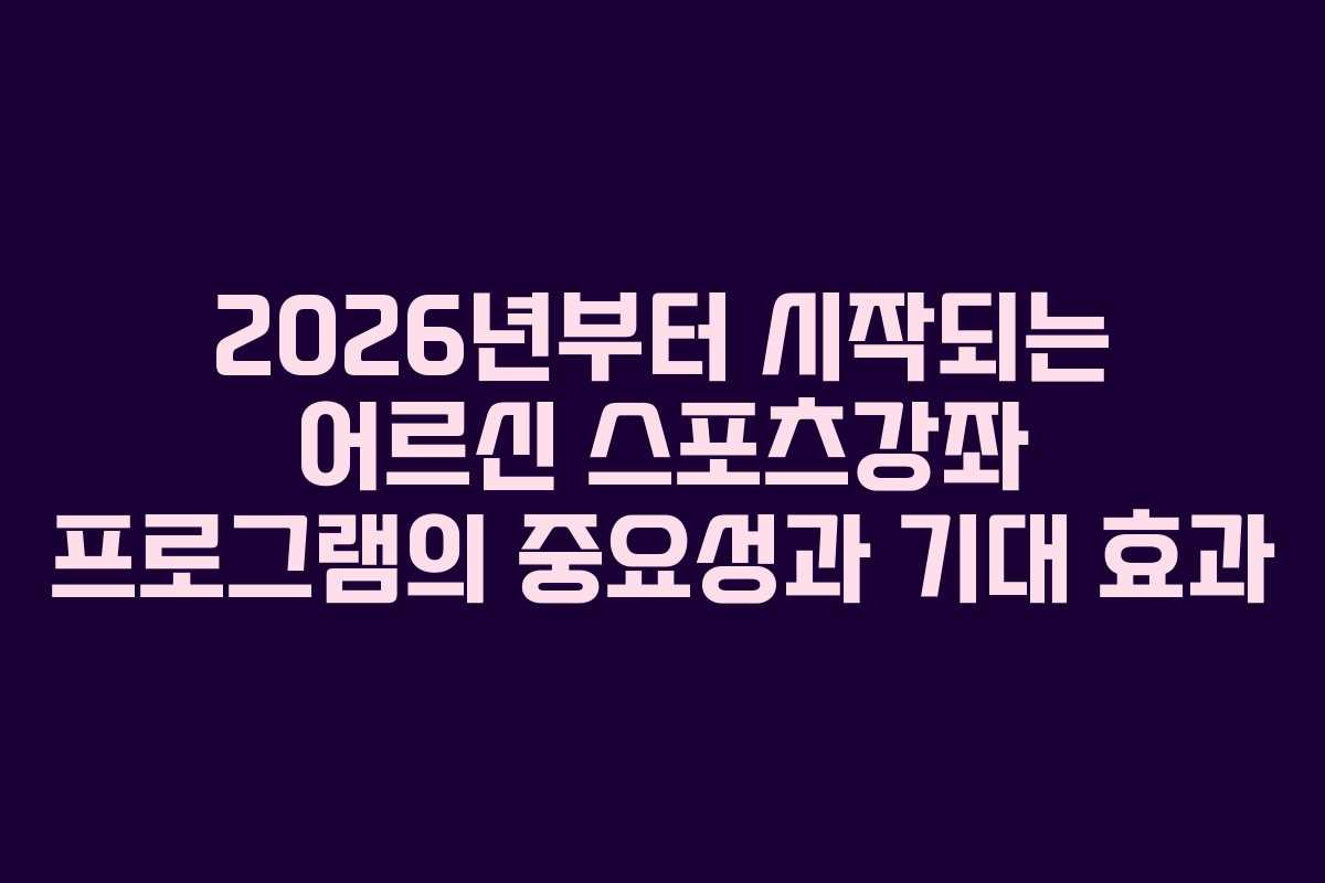 2026년부터 시작되는 어르신 스포츠강좌 프로그램의 중요성과 기대 효과