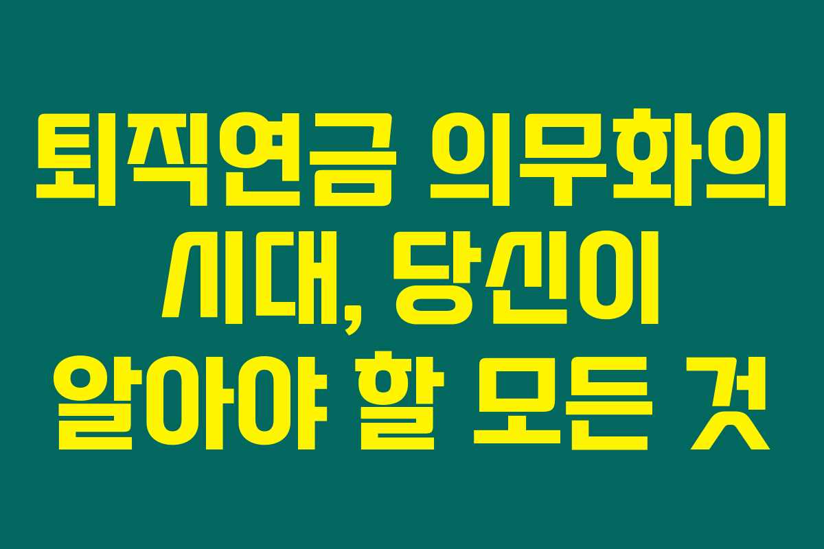 고령화가 심화됨에 따라, 퇴직연금 의무화는 국민연금과 함께 노후 소득 보장 체계의 현실을 만들어 가고 있어요. 제가 체크해본 바로는, 이러한 정책이 사회 전반에 긍정적인 영향을 미치고 있다는 점에서도 주목할 필요가 있답니다.