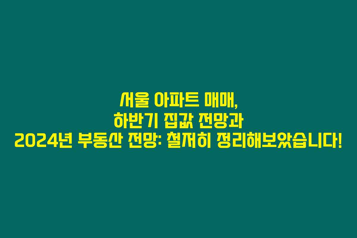 제가 직접 경험해본 결과로는, 서울 아파트 매매는 항상 많은 관심을 받는 주제이며, 특히 하반기 집값 전망과 2024년 부동산 전망은 여러분의 미래 투자 전략에 큰 영향을 미치는 요소입니다. 아래를 읽어보시면 서울 부동산 시장의 동향을 이해하고, 올바른 투자 결정을 내리는 데 도움이 되는 정보들을 얻으실 수 있을 것입니다.