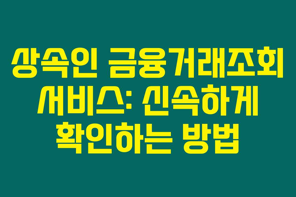 이 글을 통해 상속인 금융거래조회 서비스의 필요성을 이해하고, 절차를 원활히 진행하시길 바랍니다.