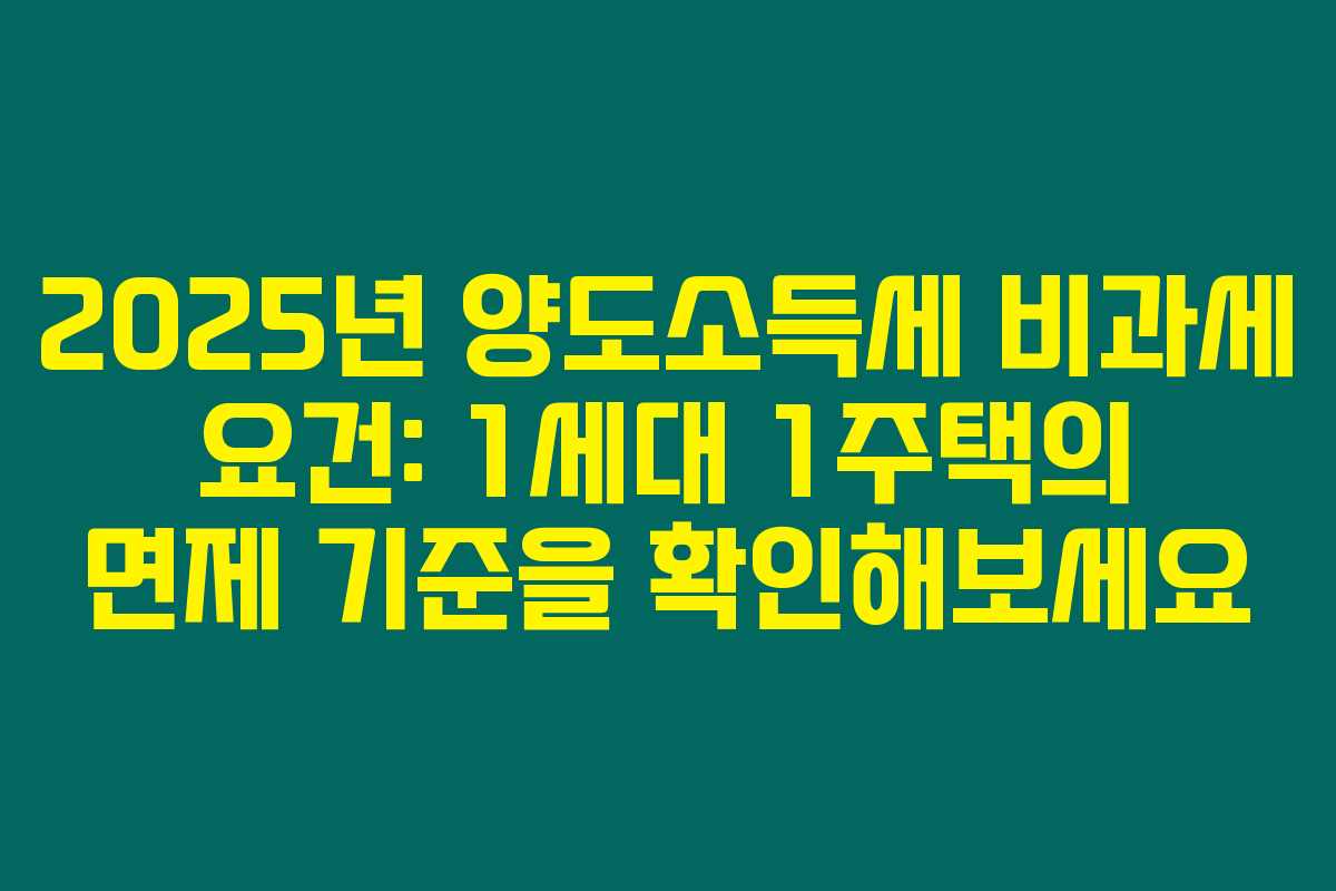 양도소득세 비과세를 위한 2025년 요건은 다음과 같습니다: