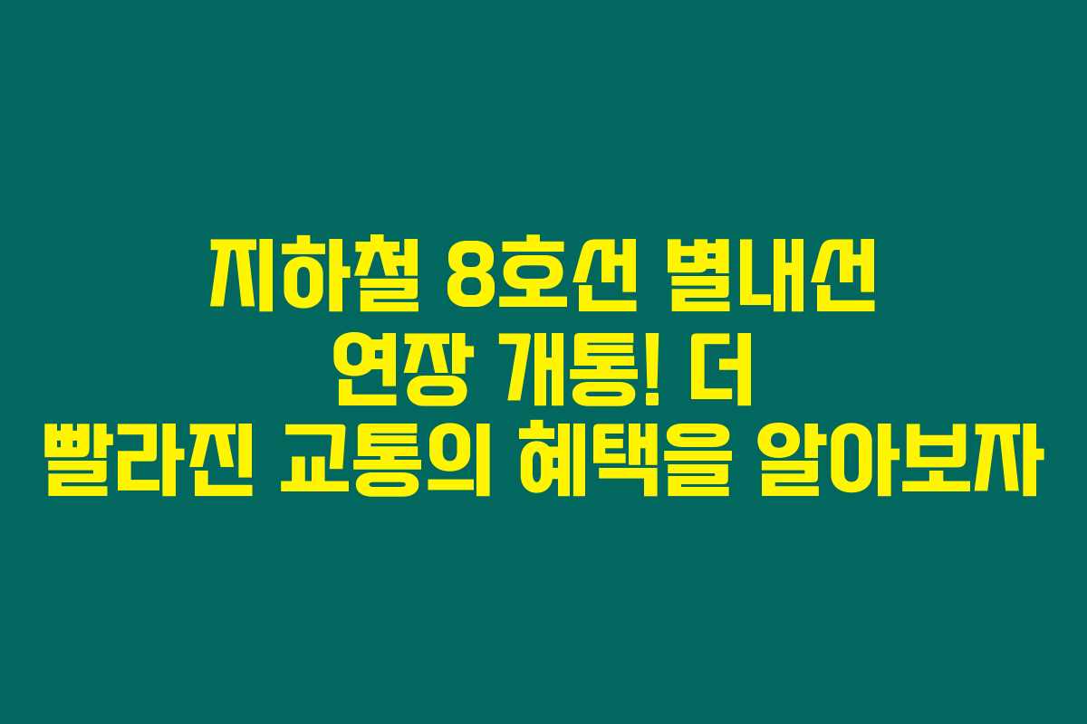 8호선 별내선의 연장으로 인해 사용자들은 어떤 변화를 기대할 수 있을까요? 제가 리서치해본 결과, 주요 기대 효과는 다음과 같습니다: