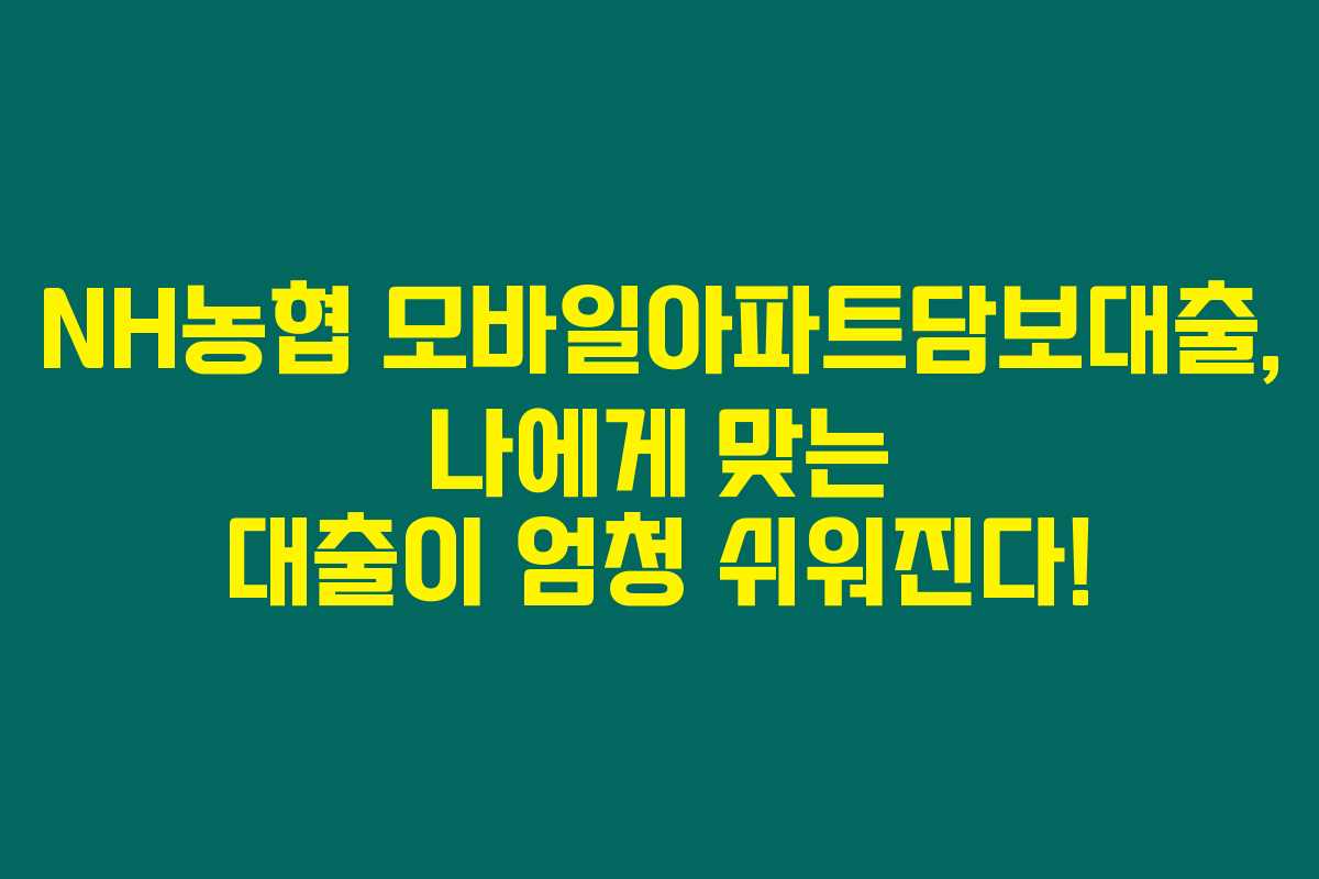 제가 알아본 바로는 NH농협 모바일아파트담보대출(주담대)은 새로운 차원의 대출 서비스를 제공합니다. 비대면으로 모바일에서 손쉽게 신청할 수 있어, 복잡한 절차 없이 집을 담보로 한 대출을 받을 수 있다는 점이 매력적입니다. 아래를 읽어보시면 대출 자격, 한도, 금리, 중도상환수수료와 같은 중요한 정보들을 상세히 알아볼 수 있을 거예요.