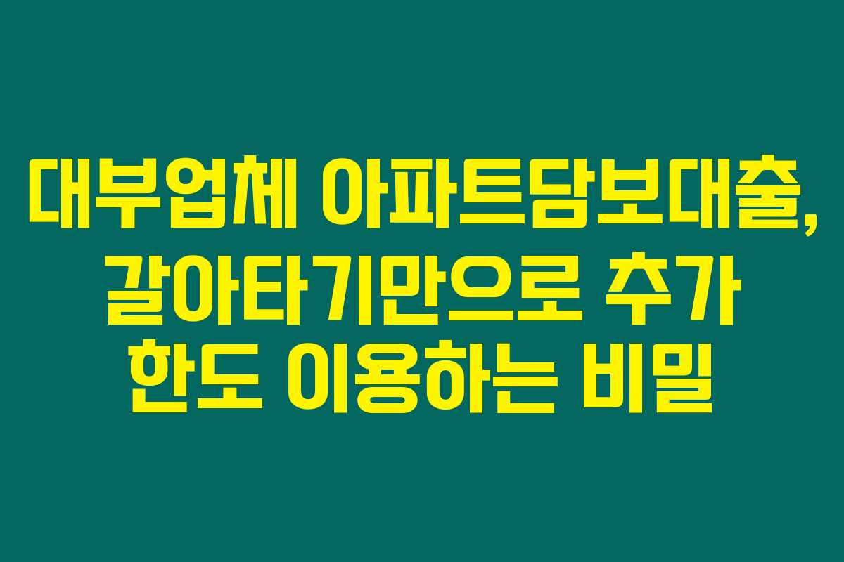 대부업체의 아파트담보대출 상품을 활용하고 싶으신 분들은 다소 까다로운 조건이 붙을 수 있습니다. 특히, 급여 소득자의 경우 아파트에 대한 자산을 확보하고 있어야만 대환대출 진행이 가능하므로 신중한 점검이 필요해요.