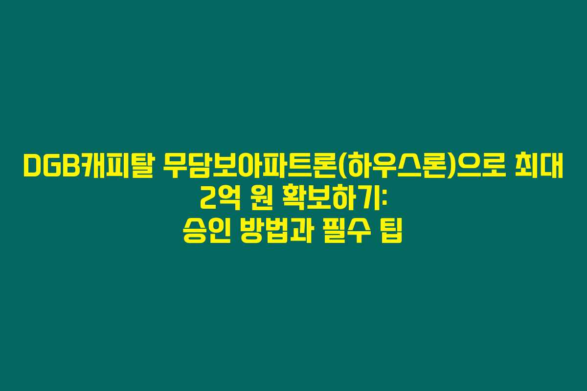 제가 직접 경험해본 결과로는 DGB캐피탈의 무담보아파트론(하우스론)은 자산의 가치를 평가하여 대출을 받을 수 있는 유용한 상품이에요. 최대 2억 원까지 승인받을 수 있는 이 상품은 기존 은행에서 대출을 받기 어려운 분들에게 특히 좋습니다. 아래를 읽어보시면 DGB캐피탈 무담보아파트론의 심사 방법과 신청 과정에 대해 자세히 알아볼 수 있을 거예요.