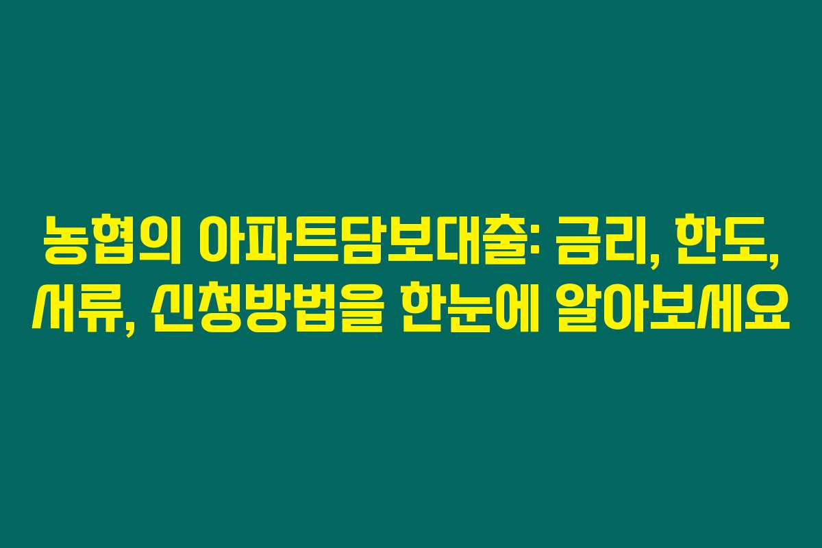 농협 아파트담보대출 금리: 당신이 알아야 할 모든 것