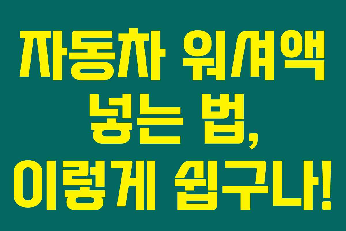 차량 유지비가 부담으로 다가올 수 있지만, 자동차 워셔액 넣는 법은 정말 간편하니 직접 시도해보시길 바랍니다. 더욱 안전하고 쾌적한 운전 환경을 만들어 보세요!