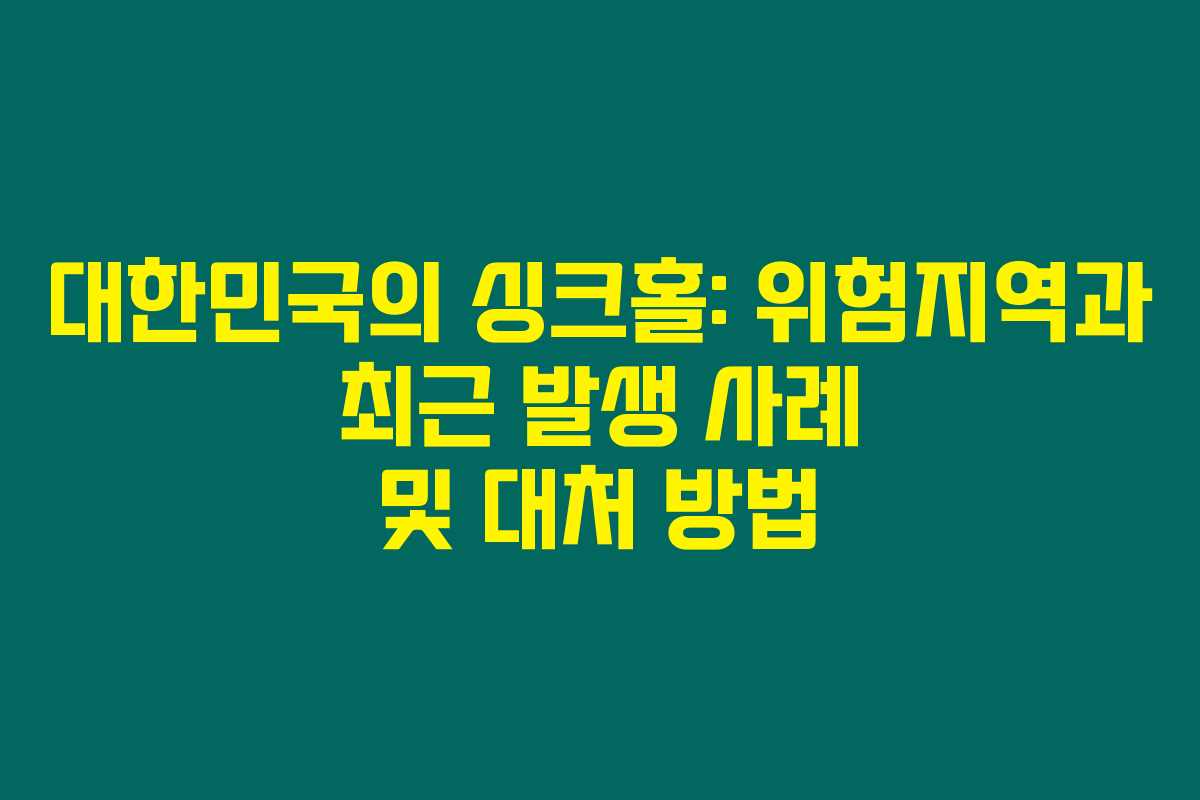 제가 직접 경험해본 바로는, 요즘 대한민국에서는 싱크홀에 대한 우려가 커지고 있어요. 이러한 현상은 자연재해처럼 보이지만, 대부분의 경우 인간의 활동이 원인이랍니다. 아래를 읽어보시면 대한민국의 싱크홀 위험지역과 최근 발생 사례, 효과적인 대처 방법에 대해 알아볼 수 있어요.