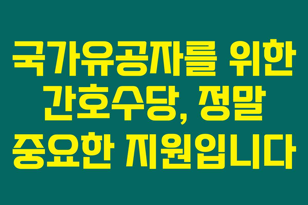 제가 직접 리서치한 바로는, 국가유공자와 보훈보상대상자에게 제공되는 간호수당은 그들의 아픔을 치유하고 경제적 부담을 덜어주는 중요한 지원제도입니다. 이 제도는 그들이 지원을 통해 가족의 생활이 보다 나아지길 바라는 희망이 담겨 있습니다. 아래를 읽어보시면 이 제도의 지원대상, 지원내용, 신청방법에 대해 자세히 알아볼 수 있을 것입니다.