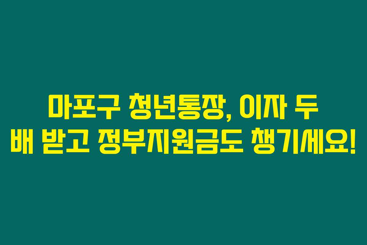 마포구의 희망두배 청년통장과 꿈나래 통장은 정말 많은 청년과 부모님들에게 큰 도움이 될 것입니다. 여러 조건을 참고하여 신청하신다면, 재정적인 지원뿐만 아니라 미래에 대한 계획도 세우는데 많은 도움이 될 것입니다. 혹시 궁금한 점이 있으면 언제든지 댓글로 물어보세요!