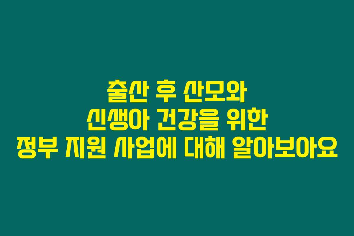 출산 후 산모와 신생아의 건강을 위한 산모신생아 건강관리 지원사업은 출산 경험을 보다 긍정적으로 만들어 줄 거예요. 필요하신 분들은 꼭 이용해보시길 바라요.