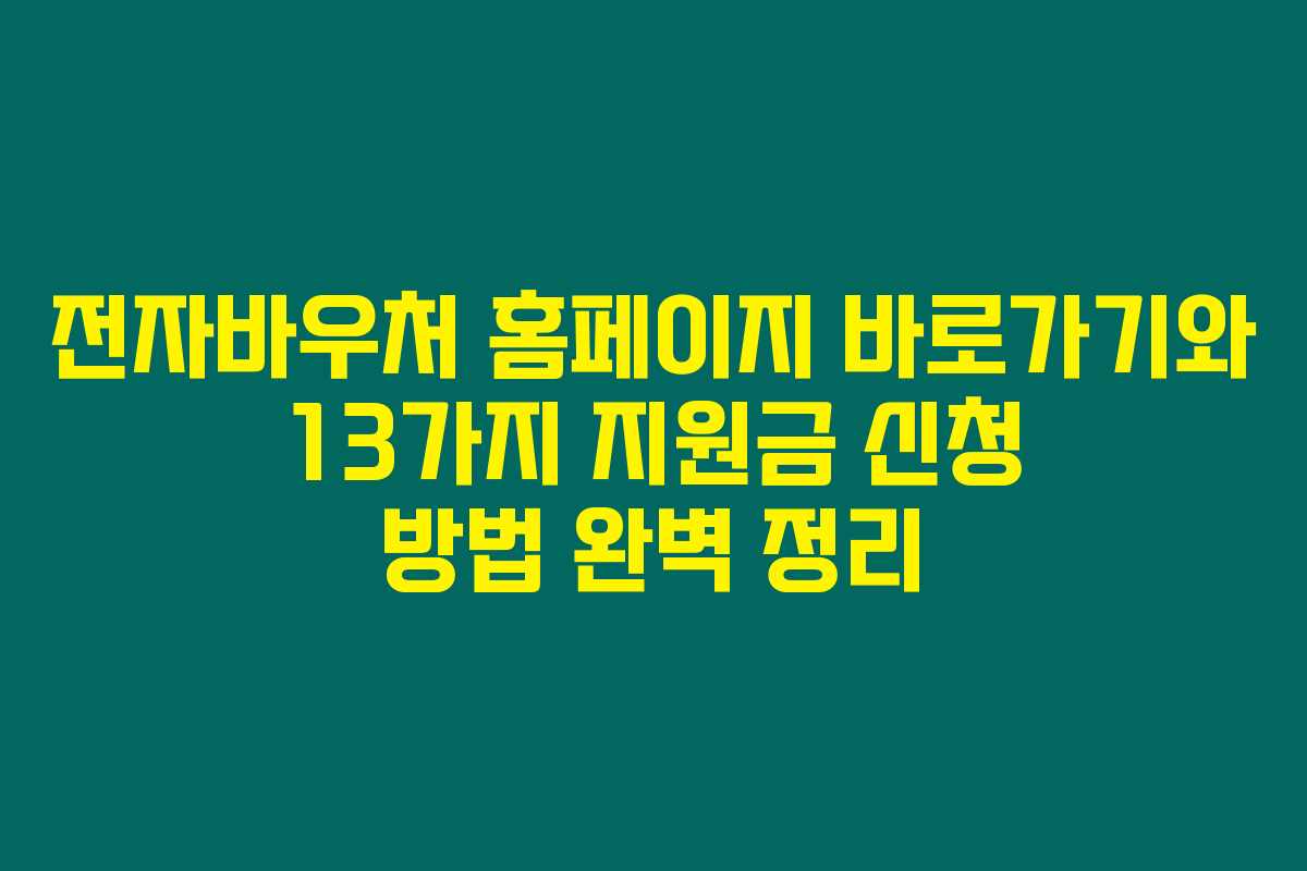 제가 알아본 바로는, 요즘 사회 서비스 지원을 받기 위한 전자바우처가 많은 분들에게 도움이 되고 있다는 사실이에요. 철저한 리서치와 직접 경험을 통해, 전자바우처를 신청하고 활용하는 방법에 대해 상세히 정리해보려고 해요. 아래를 읽어보시면 전자바우처 홈페이지 바로가기와 13가지 지원금의 신청 방법을 한눈에 확인할 수 있을 거예요.