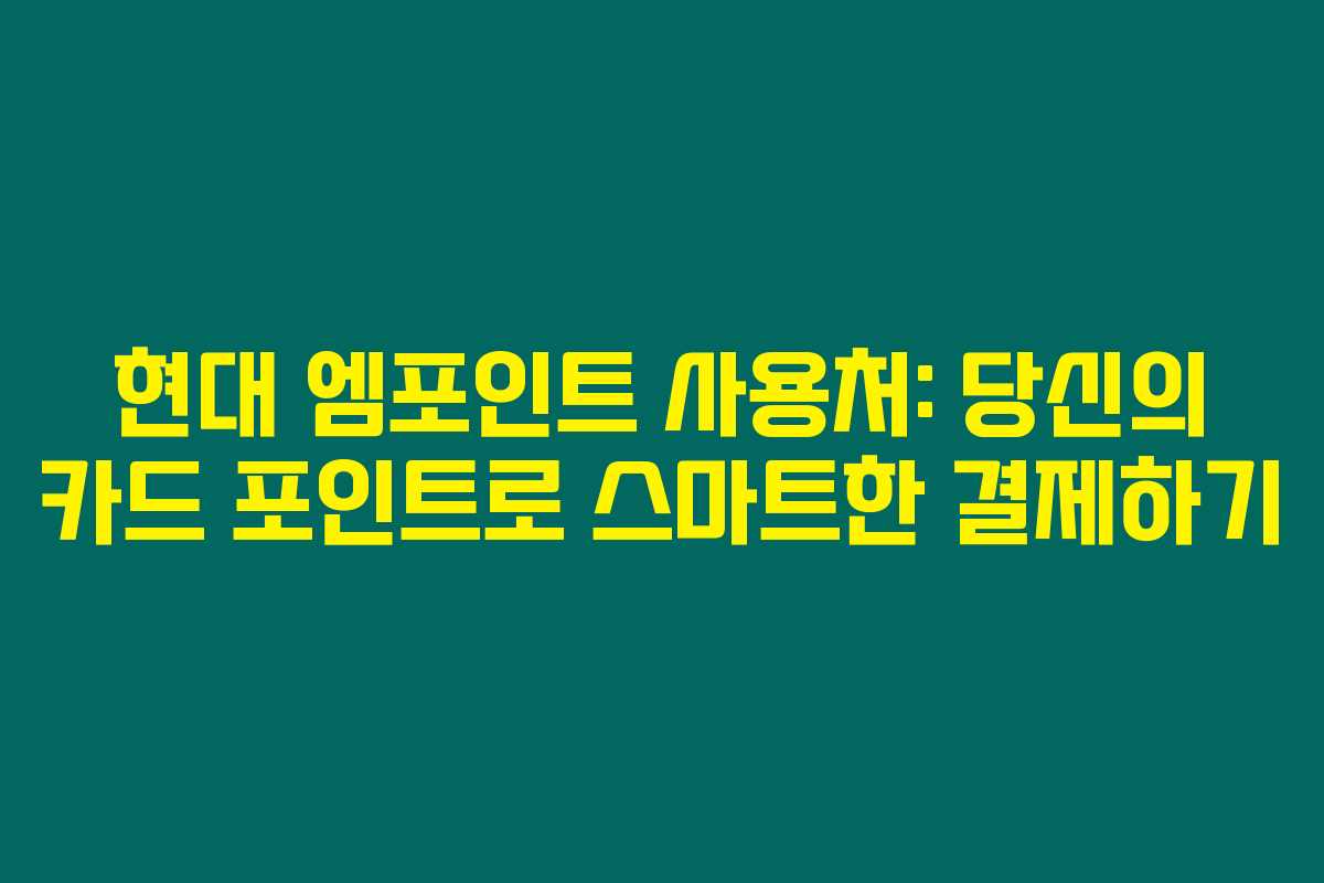 지금까지 현대 엠포인트 사용처와 관련하여 여러 가지를 알아보았는데, 현대카드를 활용해 포인트를 잘 관리하시면 정말 유용하게 사용하실 수 있답니다. 스마트한 소비를 위해 여러분들도 한 번 활용해보세요!