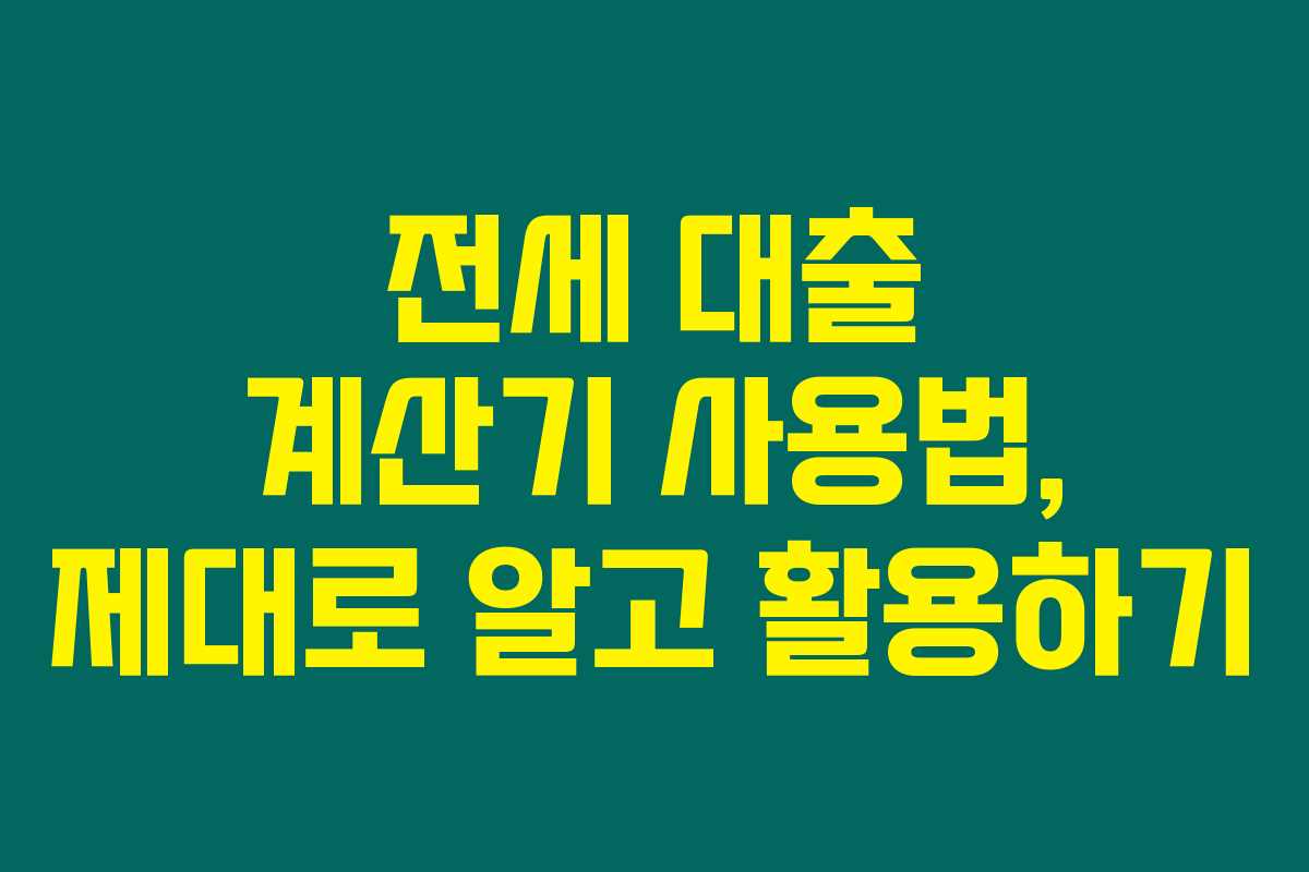 제가 직접 체크해본 바로는, 전세 대출 계산기를 사용하는 방법은 아주 간단해요. 아래의 단계를 따라 하시면 됩니다: