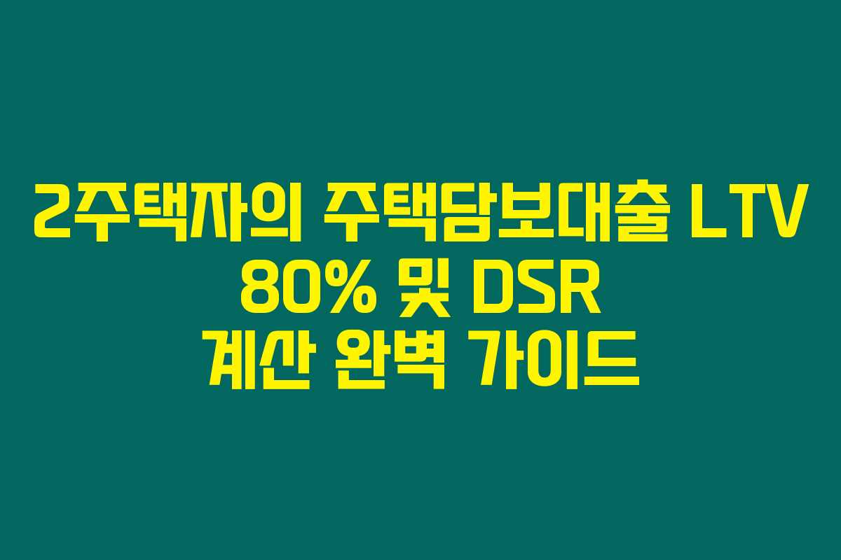 2주택자 주택담보대출은 LTV와 DSR 규제를 잘 준수해야 할 뿐만 아니라 여러 조건을 따져봐야 해요. 특히 LTV 80%의 적용 가능 여부와 DSR 방식을 충분히 이해하고 진행해야 성공적인 대출 실행을 도와줄 수 있어요.