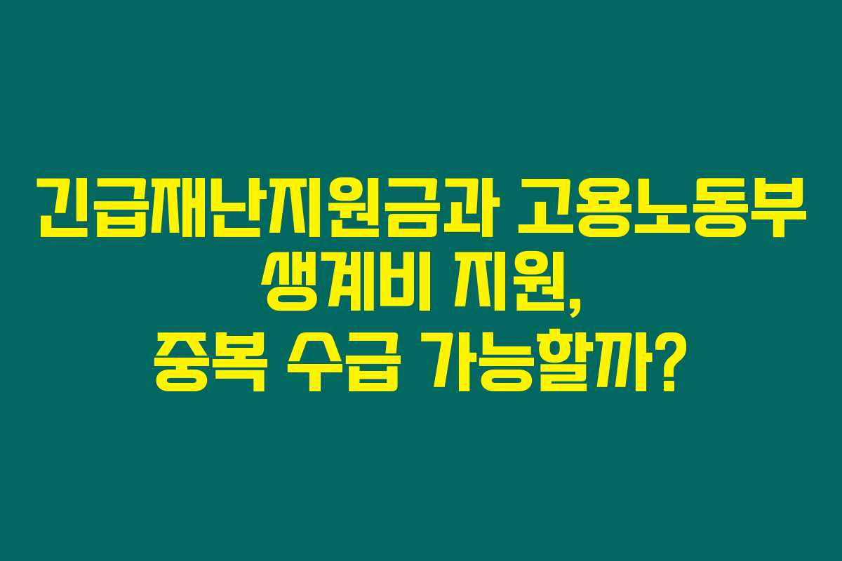 정말 그럴까요? 긴급재난지원금과 고용노동부의 생계비 지원은 중복 수급이 가능합니다. 이는 각각의 지원금이 가진 성격이 다르기 때문이에요. 긴급재난지원금은 지역 사회의 재정적 여건을 고려하여 모든 가구에 지급되는 반면, 고용노동부 지원은 특정한 상황에서 근로자에게 주어지는 지원이니 중복해서 받을 수 있답니다.