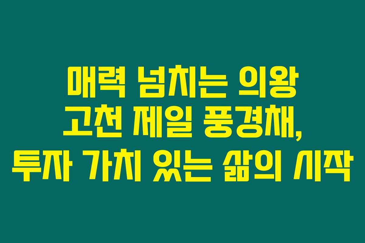 많은 개발 호재와 높은 투자 가치를 품고 있는 의왕 고천 제일 풍경채는 앞으로 더욱 주목받을 것이며, 이곳에 사는 즐거움이 무엇보다 클 것이라 생각해요. 앞으로의 변화에 큰 기대가 됩니다.