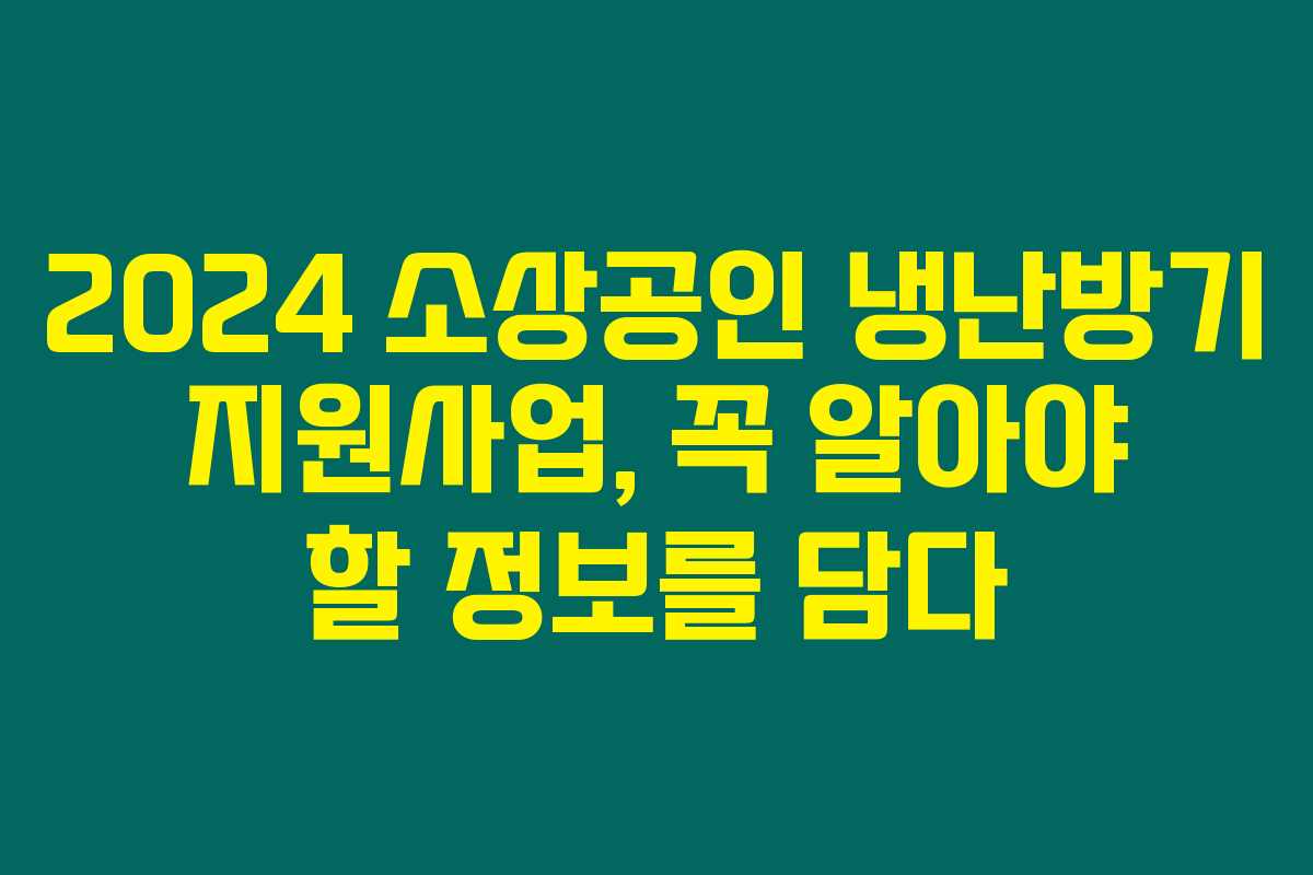 제가 직접 리서치한 바로는 2024 소상공인 냉난방기 지원사업이 소상공인들에게 큰 도움이 될 수 있는 기회임을 알게 되었습니다. 이 지원사업은 소상공인들이 쾌적한 영업 환경을 만들어 경쟁력을 높일 수 있도록 돕고, 에너지 비용 부담을 최소화할 수 있는 제도입니다. 아래를 읽어보시면 이 사업에 대한 자세한 정보와 함께 신청 방법, 자격 요건 등을 확인하실 수 있습니다.