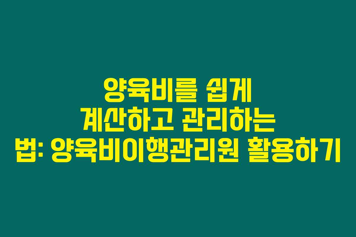 제가 직접 경험해본 결과로는, 이혼 후 양육비 문제는 많은 부모들에게 큰 스트레스를 주는 주제입니다. 양육비를 어떻게 계산하고 관리해야 할지 혼란스러운 분들도 많을 텐데요. 아래를 읽어보시면 양육비 계산기와 양육비이행관리원 웹사이트를 활용해 양육비 관리를 어떻게 하면 좋을지에 대한 유용한 정보를 얻으실 수 있습니다.