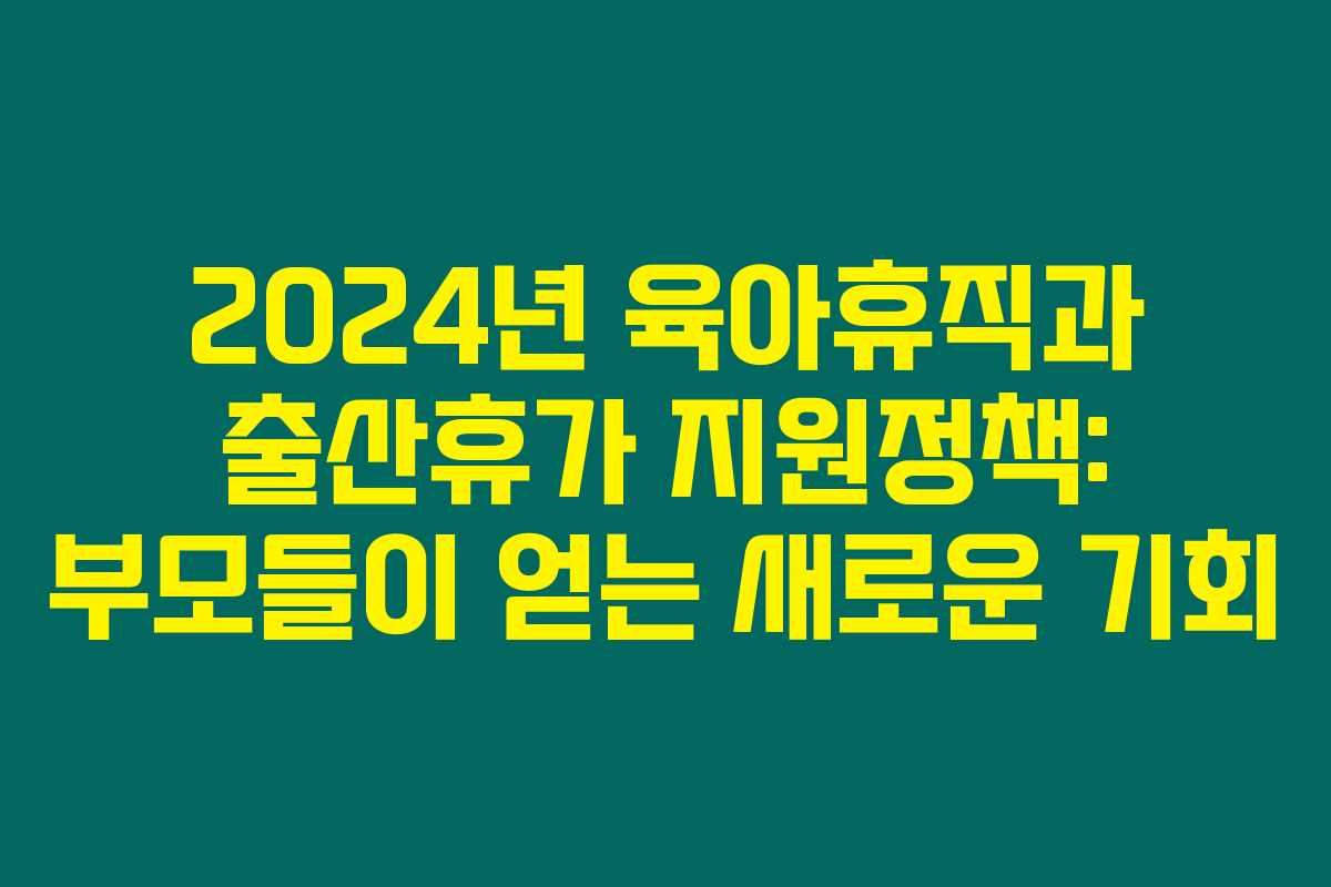 제가 직접 리서치한 바로는, 2024년부터 적용되는 육아휴직 및 출산휴가 지원정책은 부모들에게 큰 경제적 도움을 줄 것으로 기대됩니다. 이 정책은 출산과 육아에 대한 부담을 덜어주고, 일·가정 양립을 촉진하기 위한 목적으로 마련되었습니다. 아래를 읽어보시면 이 정책의 주요 내용과 혜택에 대해 보다 자세히 알 수 있을 것입니다.