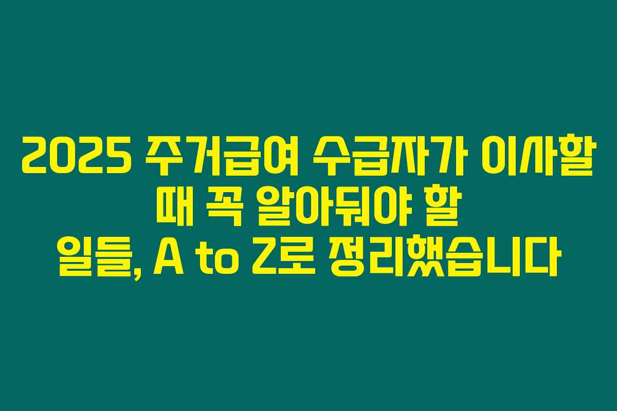 2025년 기준으로 절차가 간소화되긴 했지만, 시일 내에 모든 신고를 완료하는 것이 매우 중요해요. 주거급여 변경신청, 이사 시 꼭 챙겨주세요!