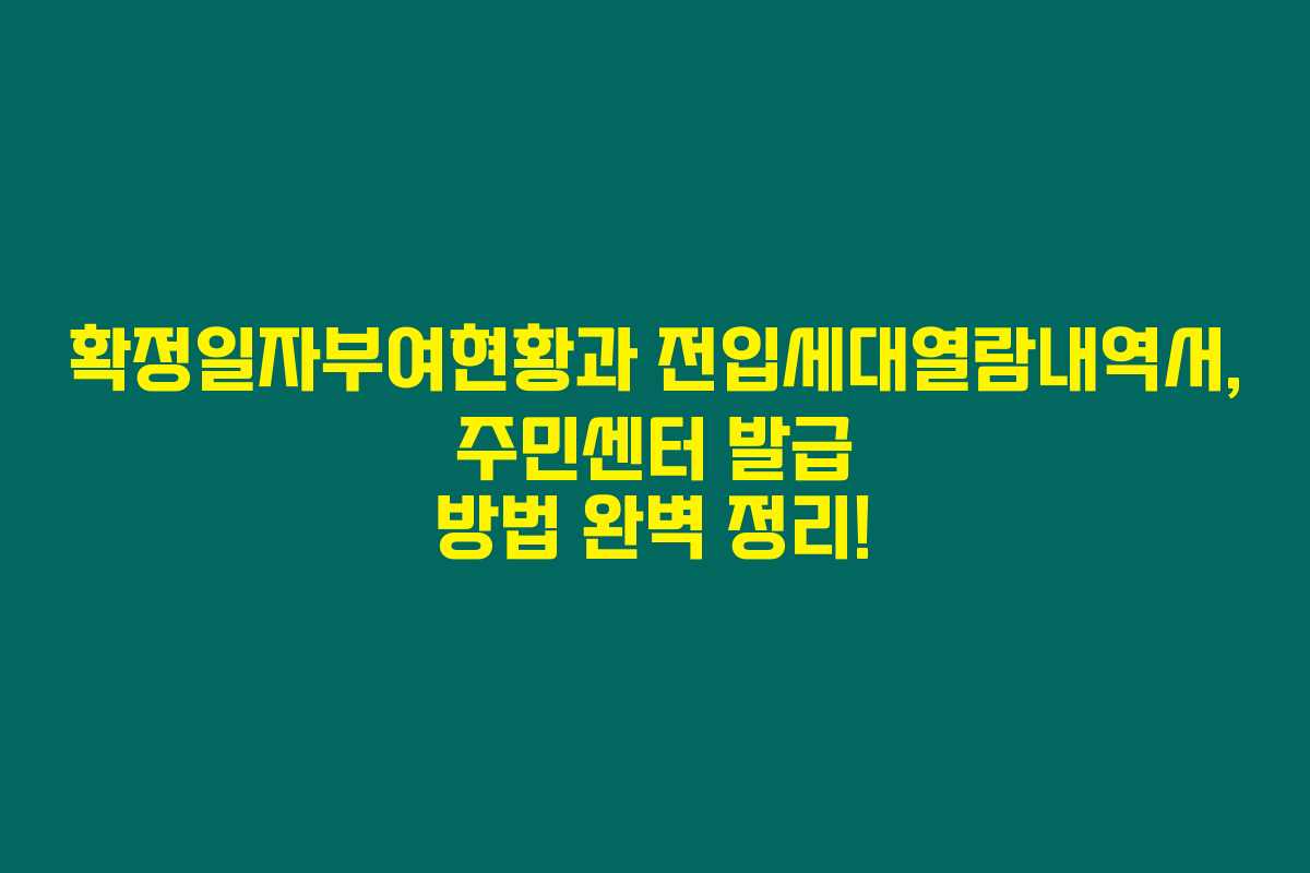 제가 직접 경험해본 결과로는, 집을 구매하거나 전세로 이사하기 전, 확정일자부여현황과 전입세대열람내역서를 발급받는 것이 매우 중요하더라고요. 이런 서류는 전세 보증보험 가입을 위해 반드시 필요하기 때문에, 아래를 읽어보시면 꼭 필요한 정보를 확인하실 수 있습니다.