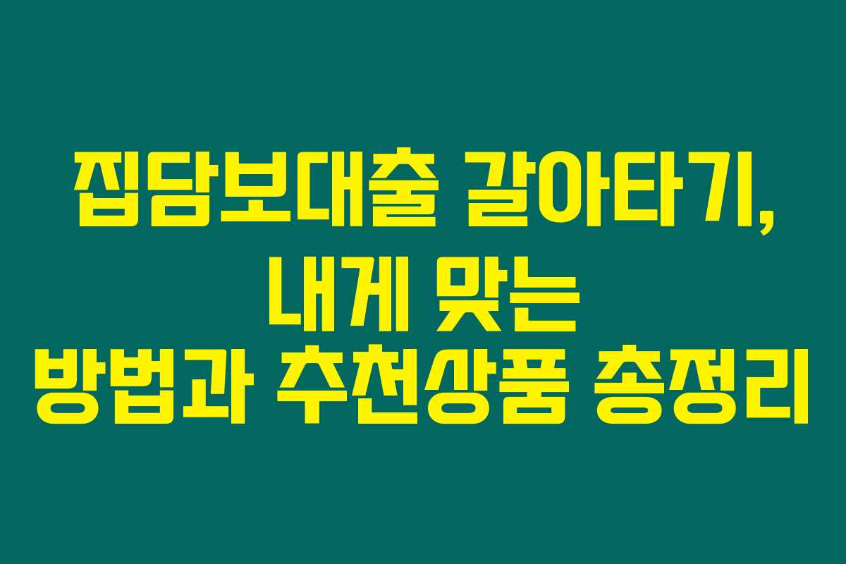 제가 직접 알아본 바로는 집담보대출을 갈아타는 것은 이자 부담을 줄이고 상환 조건을 유리하게 만들 수 있는 좋은 방법이에요. 주택담보대출은 금리가 상대적으로 낮아 더욱 인기가 있지만, 금리가 올라가거나 내려갈 수 있는 변동성이 있는 만큼 적절한 시기에 갈아타는 것이 중요합니다. 아래를 읽어보시면 집담보대출을 갈아타는 방법, 주의사항 그리고 추천 상품에 대해 자세히 알아보실 수 있을 거예요.
