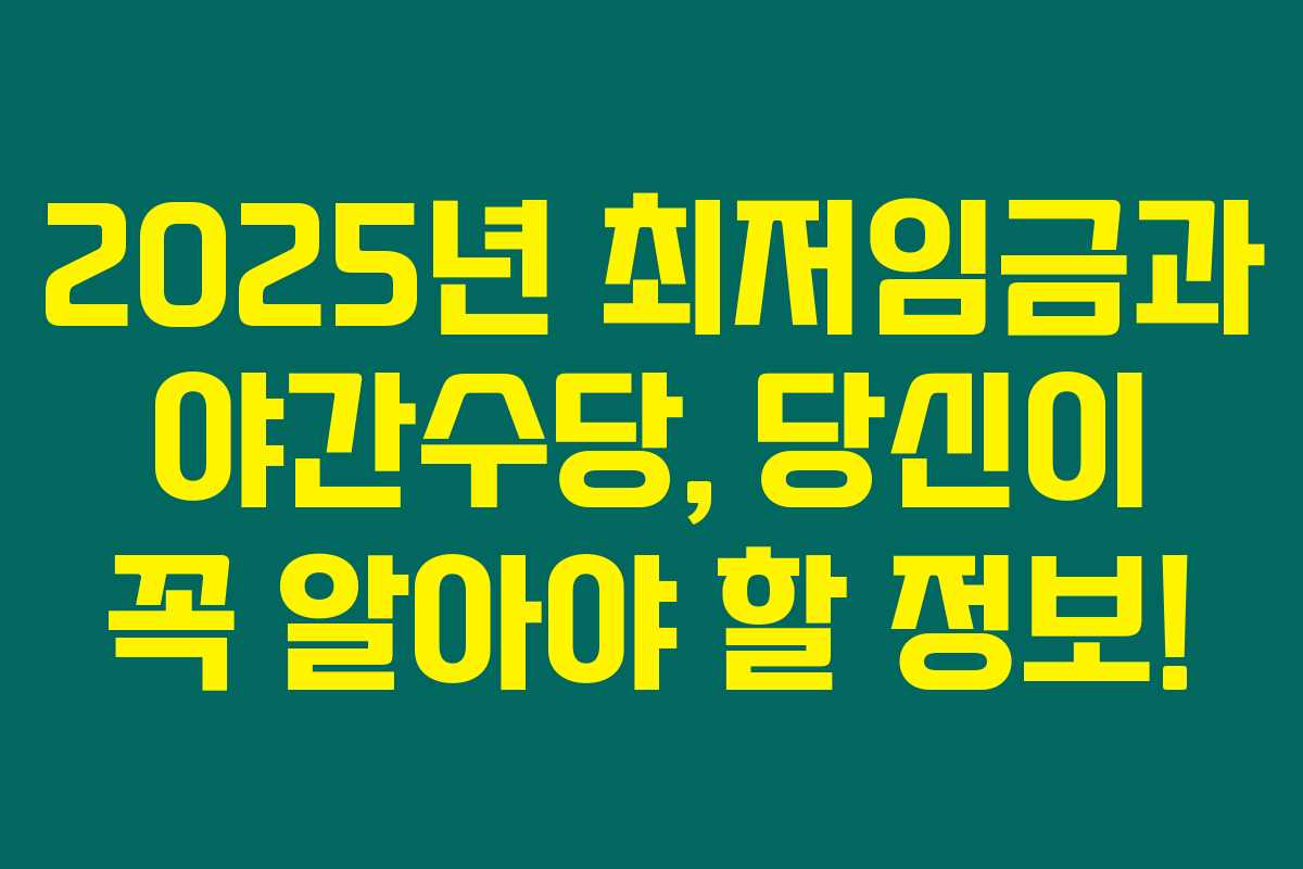 제가 직접 경험해본 결과, 2025년 최저임금과 야간수당에 대해 미리 체크해 두는 것이 매우 중요하다는 것을 알게 되었어요. 이 글에서는 2025년 최저임금이 얼마인지, 야간근무수당이 어떻게 계산되는지 등의 내용을 상세히 정리해 드릴게요.