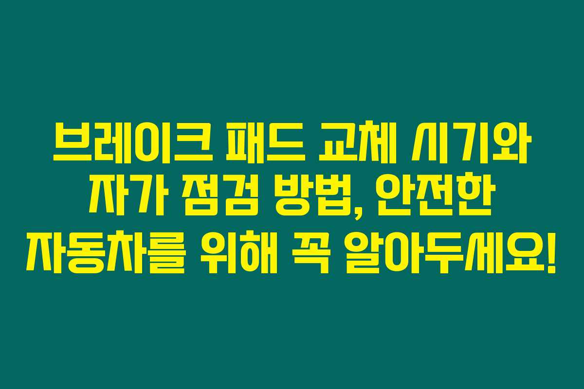 차량 주행의 안전성을 위해서, 브레이크 패드의 교체 시기와 자가 점검 방법을 꼭 기억해 두세요. 단순한 부품 관리가 안전한 드라이빙으로 이어질 수 있으니까요. 언제나 안전한 주행하시길 바랍니다!