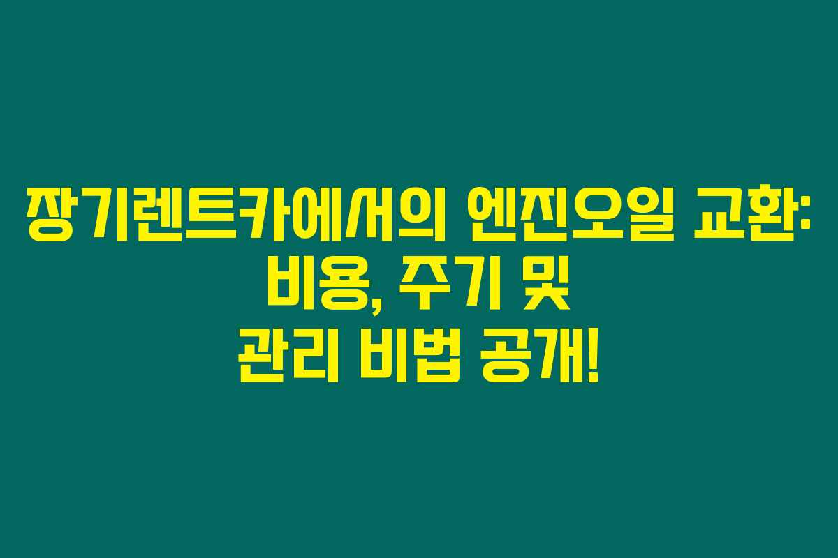 장기렌트카를 이용하는 소비자들에게 가장 큰 고민 중 하나는 차량 유지보수 비용이에요. 특히, 엔진오일 교환 비용은 어떤 주체가 부담해야 하는지, 그리고 교체 주기와 같은 여러 관리 사항들은 더욱 중요한 문제지요. 아래를 읽어보시면 장기렌트카의 엔진오일 관리에 대해 알차고 실용적인 정보를 제공 받을 수 있습니다.