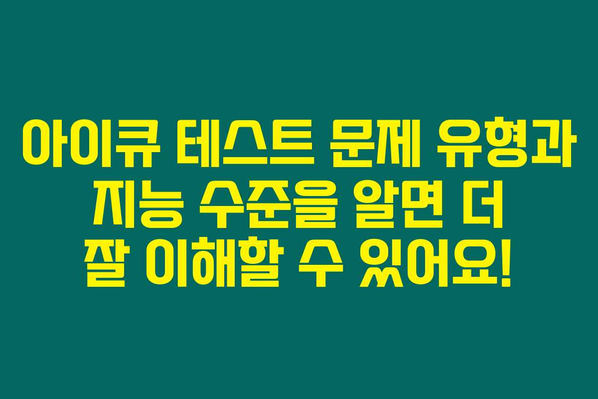 아이큐(IQ) 테스트는 지적 능력의 척도로 널리 사용됩니다. 하지만 이 테스트가 어떤 문제 유형으로 구성되어 있고, 지능 수준이 어떻게 분류되는지에 대한 정보는 많이 접하지 못했을 거에요. 아래를 읽어보시면 아이큐 테스트의 다양한 문제 유형과 지능 수준 분류에 대해 상세히 알아보실 수 있습니다.