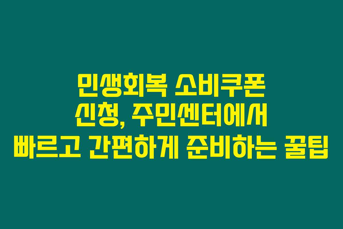 주민센터에서 민생회복 소비쿠폰 신청은 미리 준비하면 훨씬 수월해요. 필요한 서류를 미리 준비하고, 적절한 시점에 방문한다면 혼잡함을 피해 유용하게 신청할 수 있어요. 이런 꿀팁들을 활용해서 꼭 응모해 보세요!