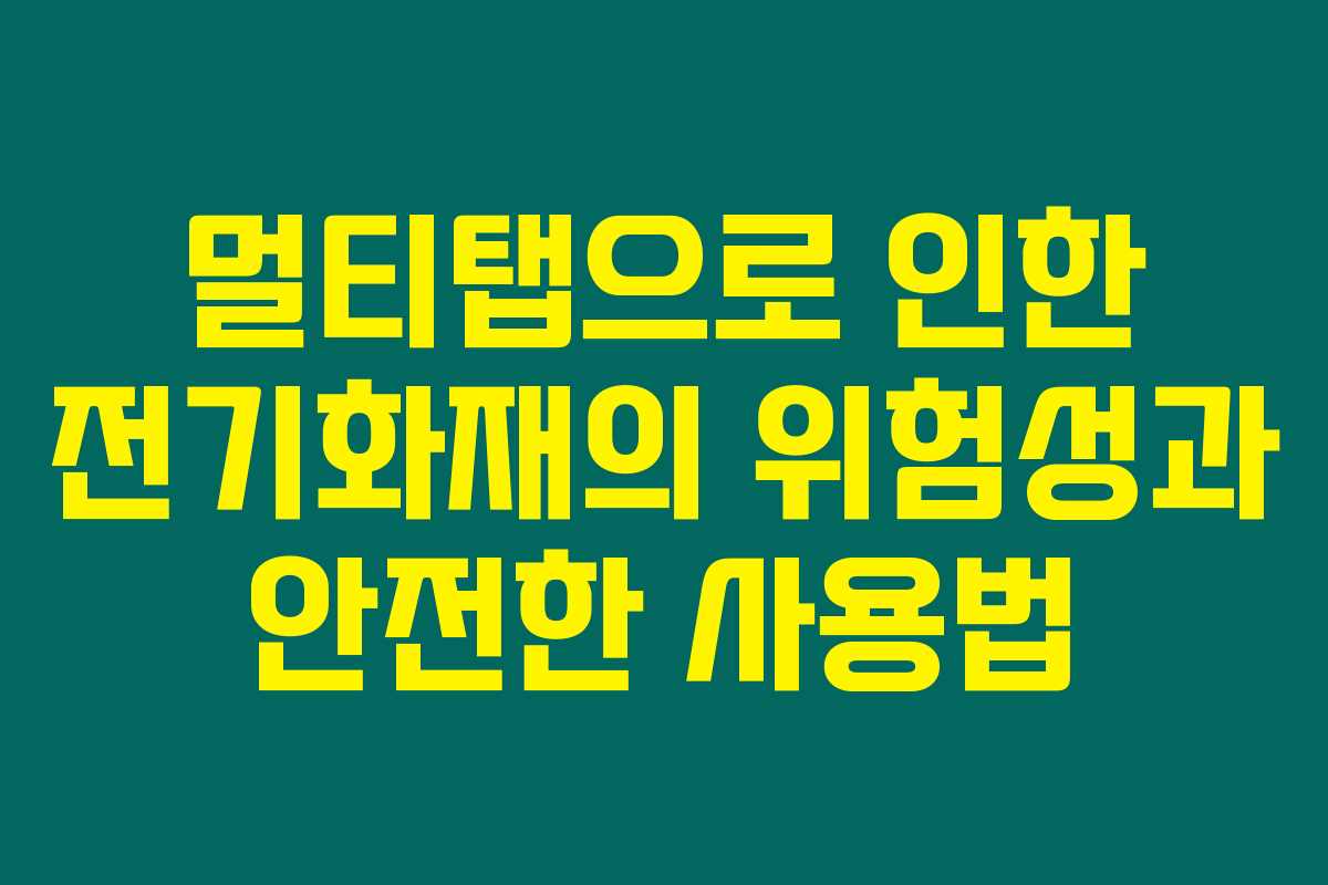 전기화재는 현대 생활에서 종종 발생하는 위험 중 하나입니다. 특히 멀티탭을 잘못 사용하면 전기화재의 위험은 더욱 커집니다. 아래를 읽어보시면 멀티탭 사용의 위험성과 안전한 사용 방법에 대해 유익한 정보를 제공받을 수 있을 것입니다.
