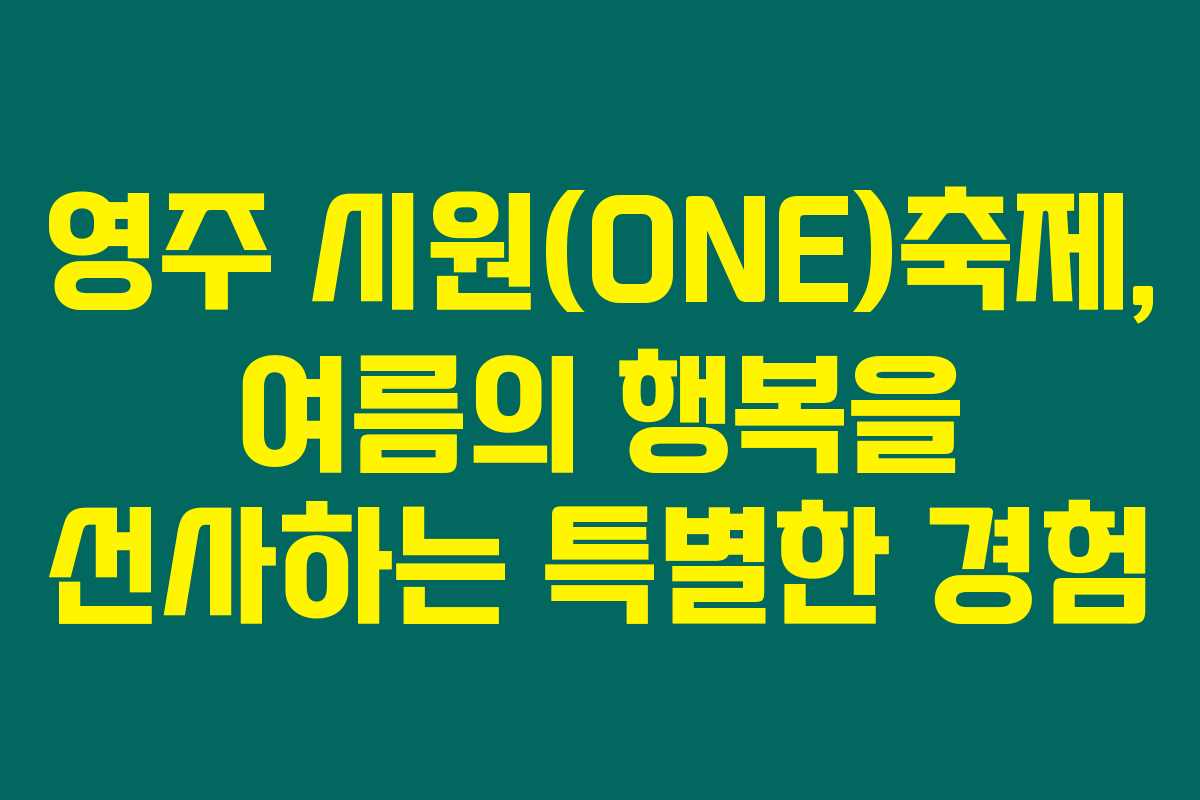 무더운 여름을 시원하게 보내고 싶으신가요? 그렇다면 영주 시원(ONE)축제가 정답이에요! 오는 7월 29일부터 8월 6일까지 진행되는 이 축제는 지역 주민과 외부 방문객 모두를 아우르는 다양한 프로그램으로 가득 차 있습니다. 아래를 읽어보시면, 이 축제가 어떻게 여러분의 여름을 특별하게 만들어 줄 수 있는지 알게 되실 거예요.