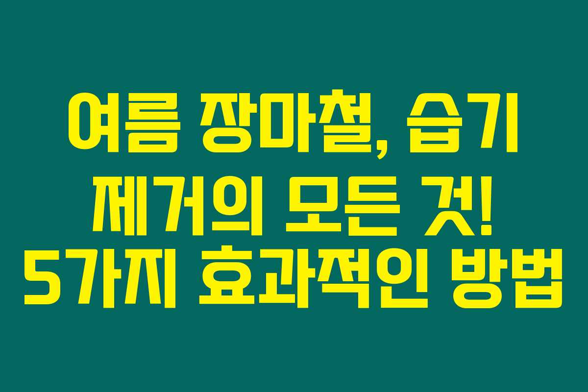 여름 장마철은 비와 습기로 인해 집안 곳곳에 문제가 생기기 일쑤지요. 특히 곰팡이의 유병률이 증가하고, 눅눅한 공기로 인해 불편함을 느끼게 됩니다. 이 글에서는 비용을 최소화하면서 집안에서 쉽게 실행할 수 있는 여름 장마철 습기 제거 방법 5가지를 소개할 예정이에요. 아래를 읽어보시면 효과적인 습기 제거 팁을 익힐 수 있습니다!