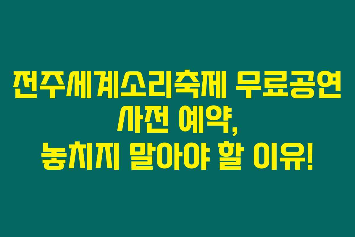전주세계소리축제는 단순한 축제를 넘어 우리의 전통 문화를 존중하고 다양한 예술을 경험할 수 있는 기회를 제공합니다. 무료공연 사전 예약을 통해 여러분도 이 특별한 순간을 놓치지 마세요! 다양한 프로그램 속에서 전통의 소리와 감동을 느껴보시길 바랍니다.