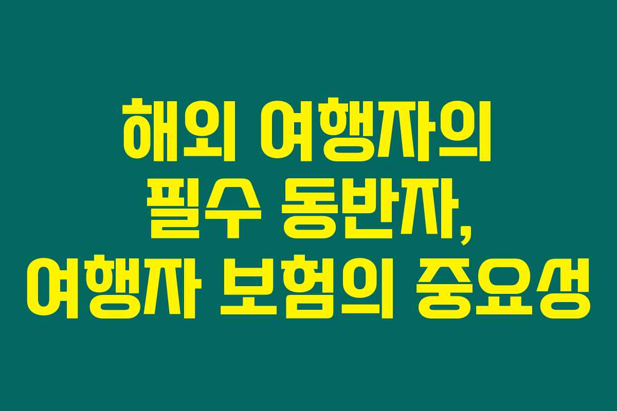 해외 여행자 보험은 예상치 못한 사고와 고액 의료비에 대비하기 위해 필요합니다. 해외에서 건강보험이 적용되지 않으므로, 꼭 가입해야 합니다.