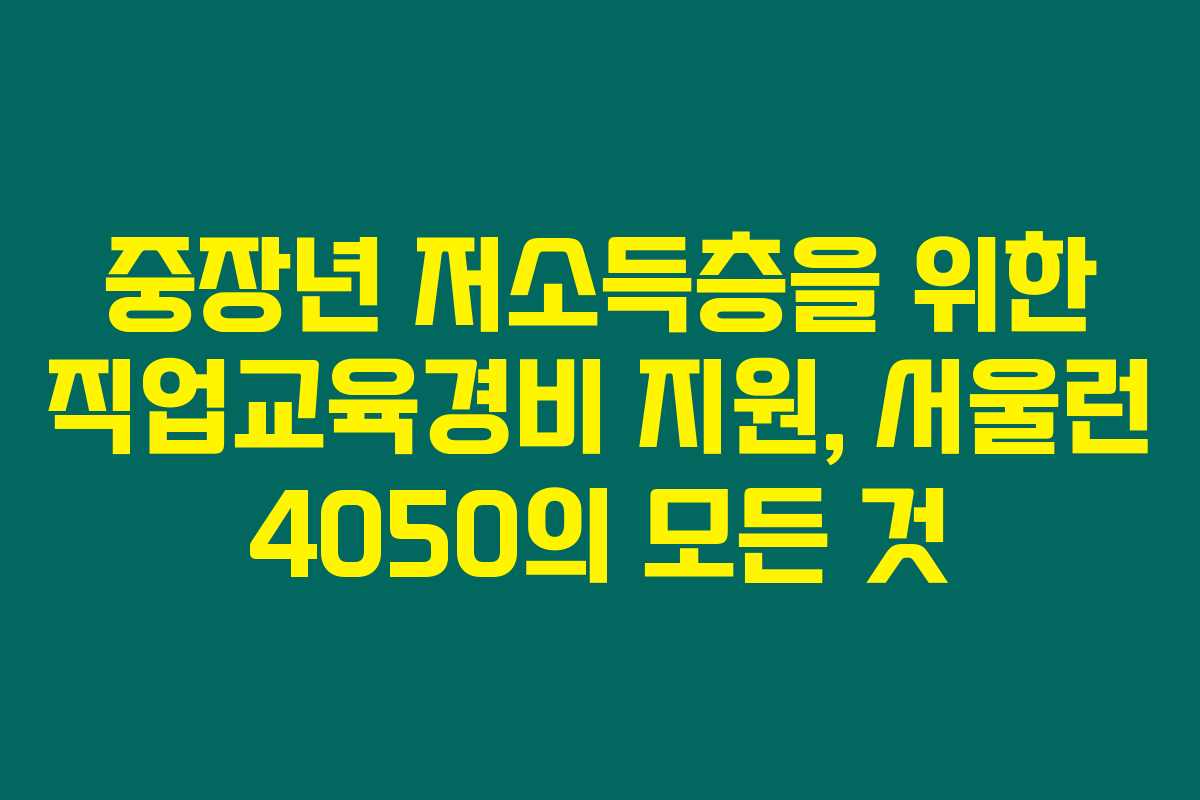 서울시에서는 중장년 저소득층의 직업 역량 강화를 위해 서울런 4050 직업교육경비 지원사업을 운영하고 있습니다. 이번 글에서는 직업교육경비 지원의 대상, 신청 방법, 그리고 지원금의 사용 방법 등을 자세히 소개하니, 아래를 읽어보시면 많은 도움이 되실 거예요.
