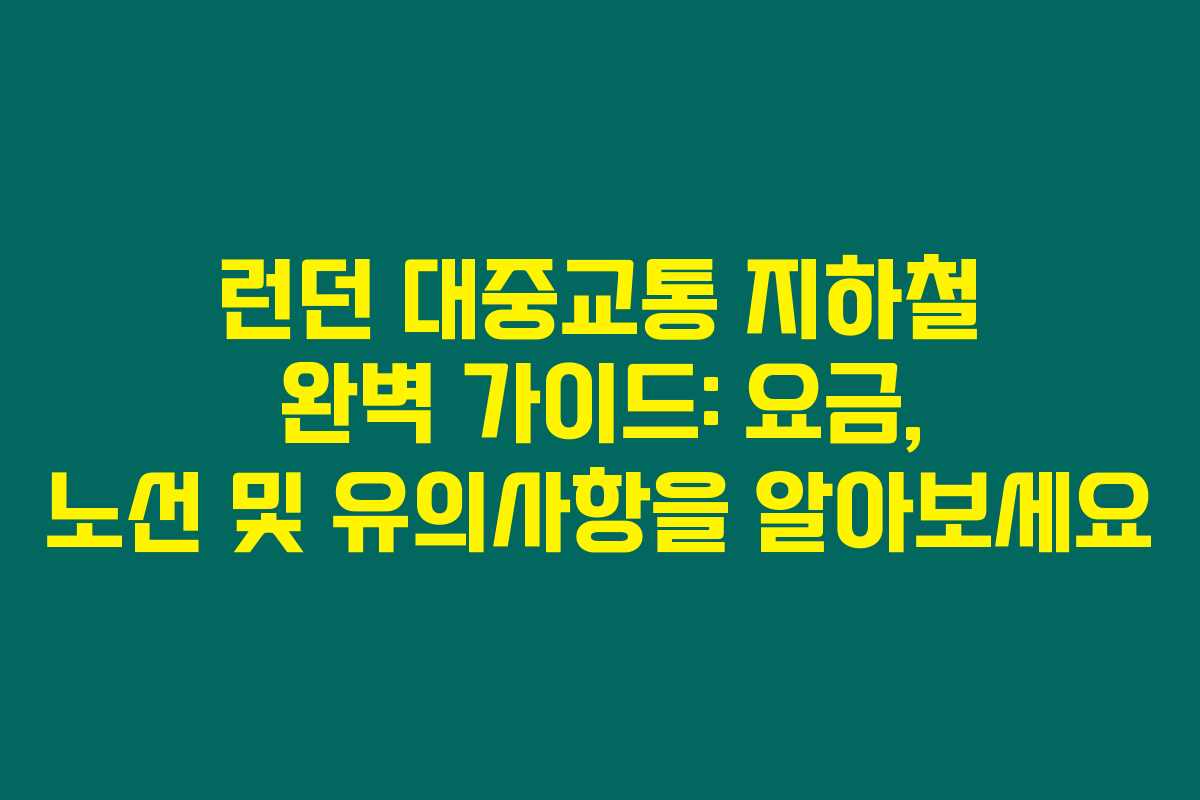 런던 지하철 요금: 이게 더 비쌀 줄이야