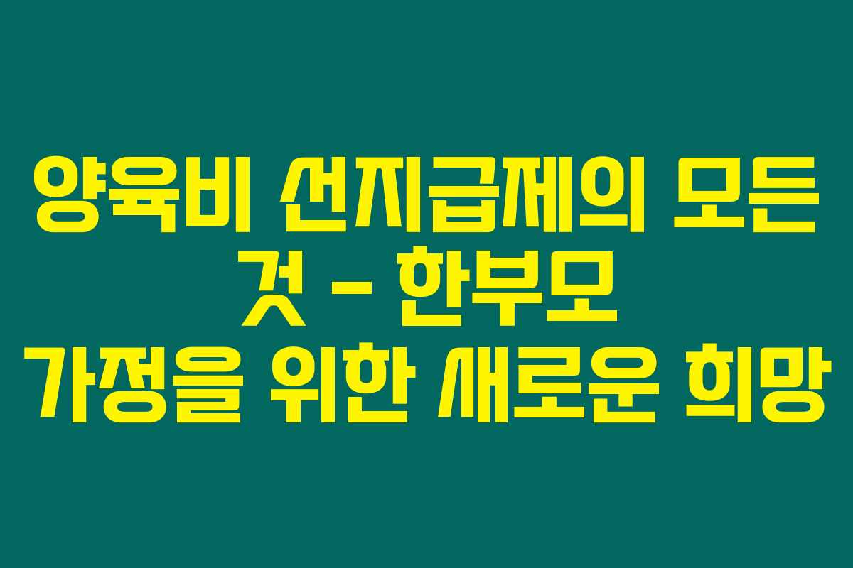 양육비 문제로 힘들어하는 한부모 가정이 많죠 그렇다면 양육비 선지급제를 알고 계신가요? 이 제도는 경제적 어려움을 겪는 가정에게 큰 힘이 되어줄 수 있습니다. 특히 자녀의 양육비를 제때 받지 못해 골머리를 앓는 한부모 가정이라면 아래 내용을 꼭 확인해보셔야 합니다.