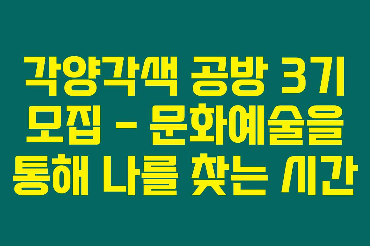 결국, 각양각색 공방 3기는 여러분의 문화 예술 체험을 풍부하게 해줄 기회입니다. 새로운 취미와 경험을 찾고 있다면 이 프로그램은 놓쳐서는 안 될 기회에요. 관심 있는 분들은 꼭 신청해보세요!