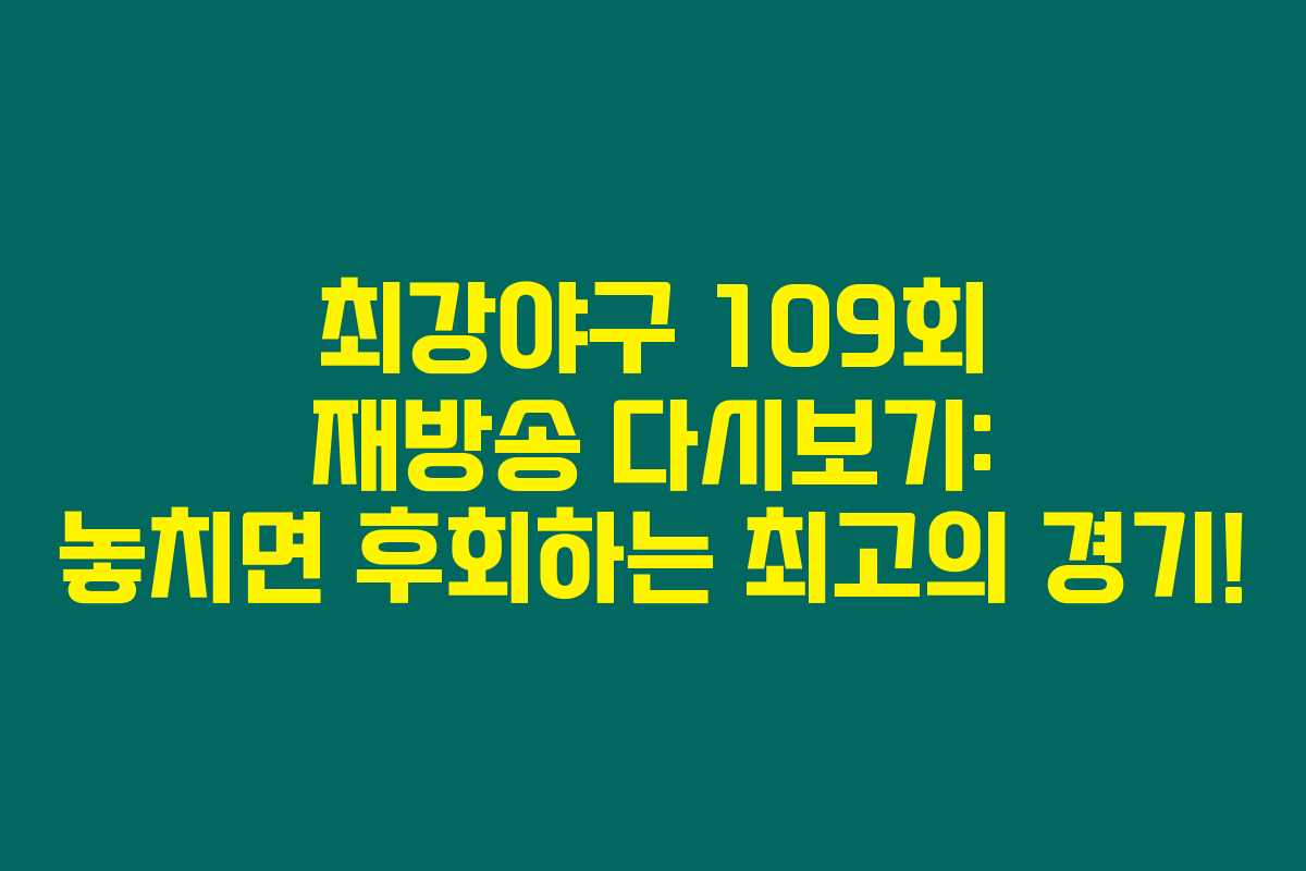 이번 최강야구 109회 재방송을 놓치지 않고 꼭 보시길 바라요! 여러분의 기대 이상의 경기가 여러분을 기다리고 있답니다. 재미있게 감상하세요!