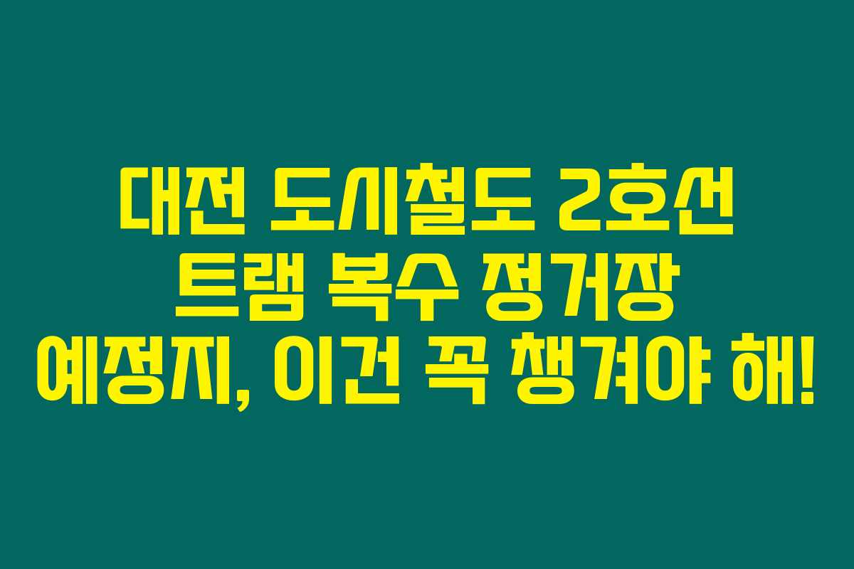 부동산을 찾는 사람이라면 가장 신경 쓰이는 것이 바로 투자 가치를 높여주는 요인인데요. 대전 도시철도 2호선 트램의 정거장 예정지는 현재 부동산 투자자들에게 큰 관심을 받고 있습니다. 교통이 편리해지면 주거지와 상업 지역의 수요 증가가 예상되기 때문이에요. 제가 알기로도 대전 지역의 부동산 시장은 최근 몇 년 사이에 활발해진 편이에요. 여러분도 이 트렌드에 발맞춰 투자 여부를 고민해보길 바랍니다!