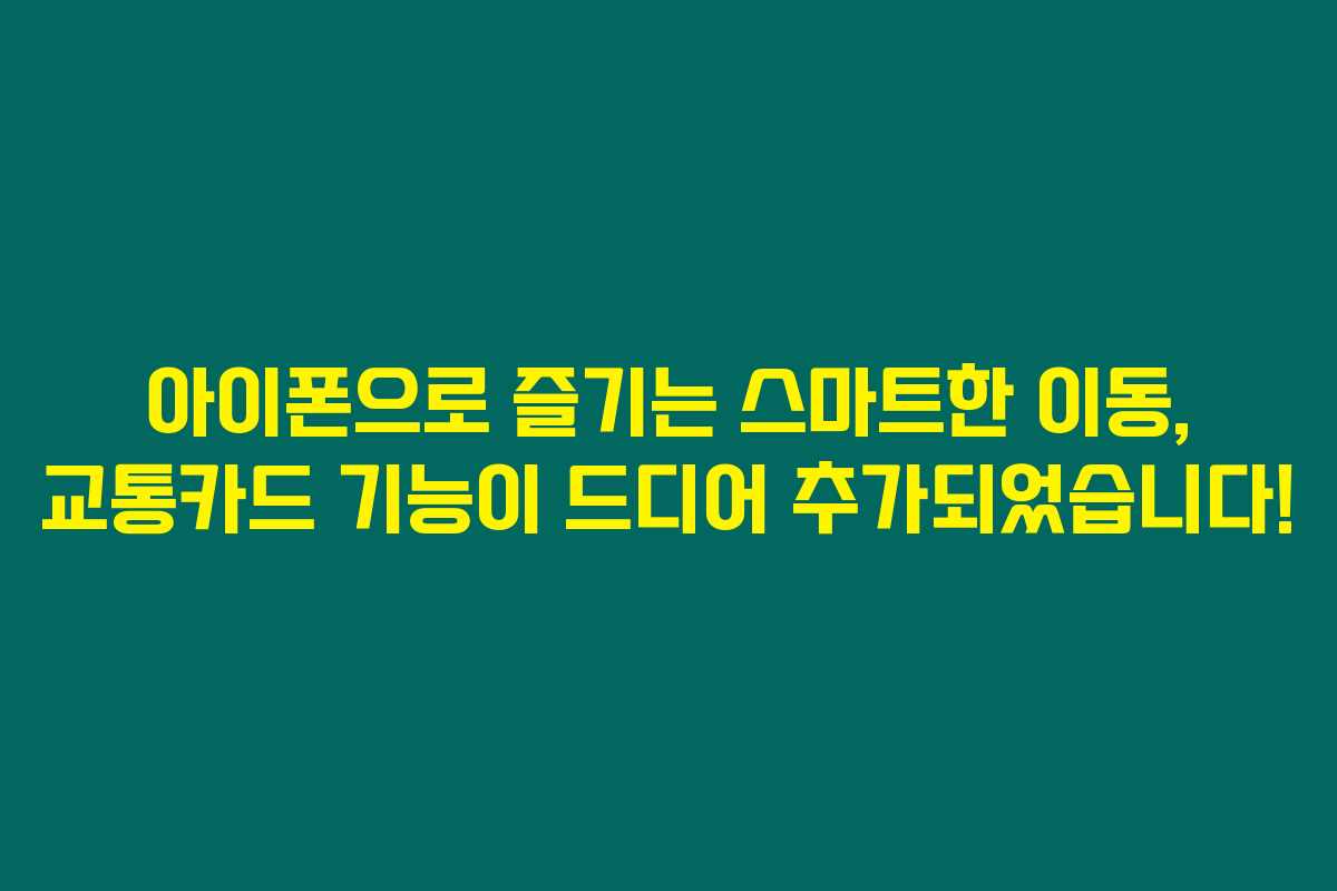 2025년 7월 22일, 울린 뉴스가 너무나 반가운 소식이에요. 아이폰 교통카드가 드디어 출시되었어요! 이제는 아침마다 지갑을 뒤지며 교통카드를 찾을 필요가 없죠. 아이폰과 애플워치 한 대만 있으면 전국의 버스와 지하철을 자유롭게 이용할 수 있게 되었다는 사실에 너무 많은 아이폰 유저들이 환호하고 있어요. 여러분도 이 편리한 소식을 놓치고 싶지 않으시죠?