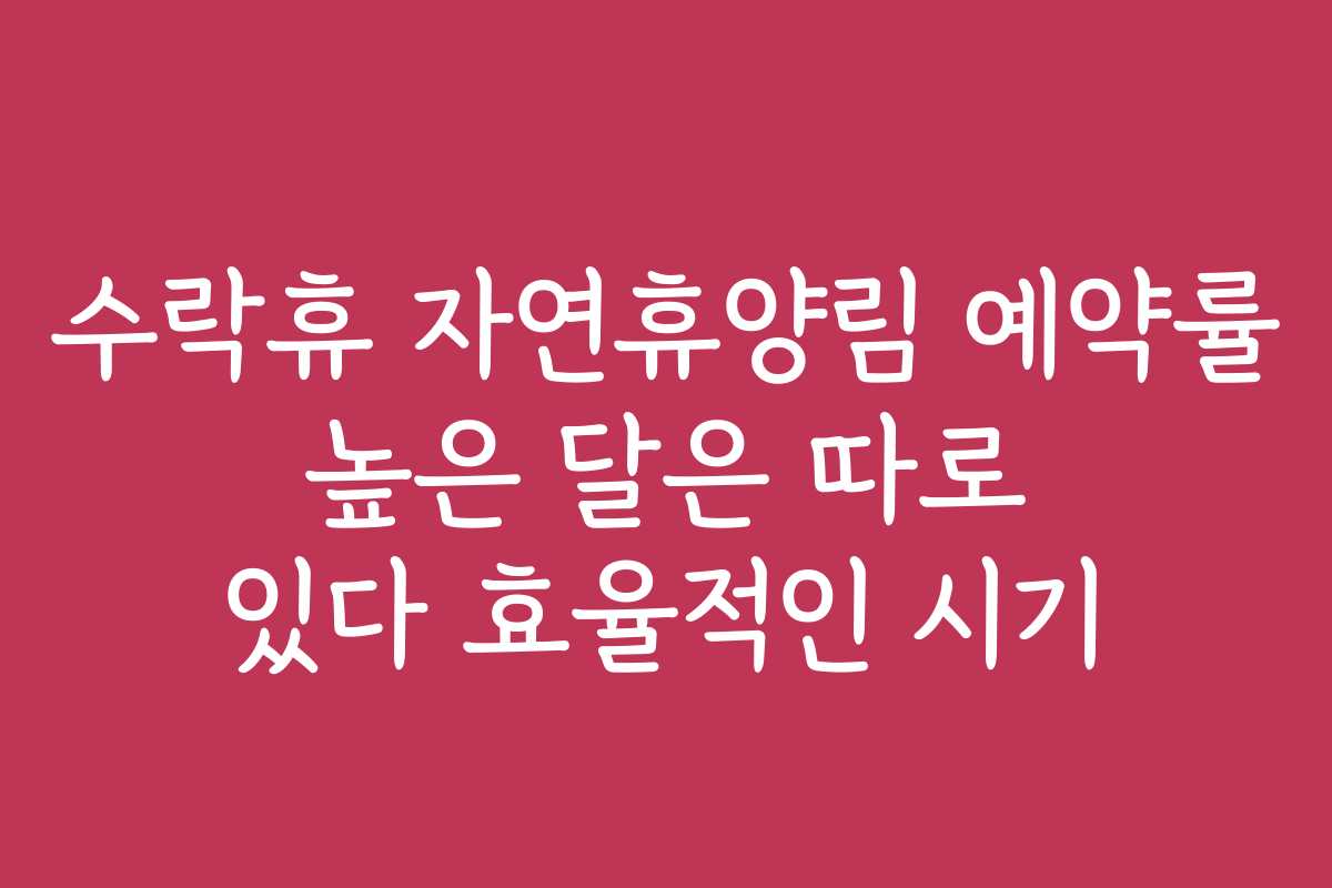 수락휴 자연휴양림 예약률 높은 달은 따로 있습니다. 특히, 어떤 계절에 많이 예약되는지 모르겠다면, 이 글을 통해 궁금증을 해결하세요. 예약 시기를 정확히 파악하는 것은 휴양림에서의 즐거운 시간을 보장하는 필수 요소입니다.