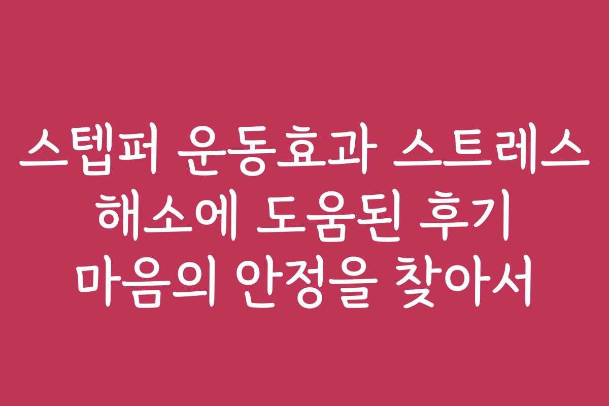 스텝퍼 운동효과 스트레스 해소에 도움된 후기 마음의 안정을 찾아서