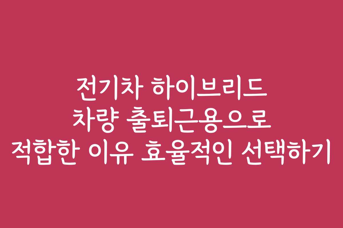 전기차 하이브리드 차량 출퇴근용으로 적합한 이유의 정의 및 중요성