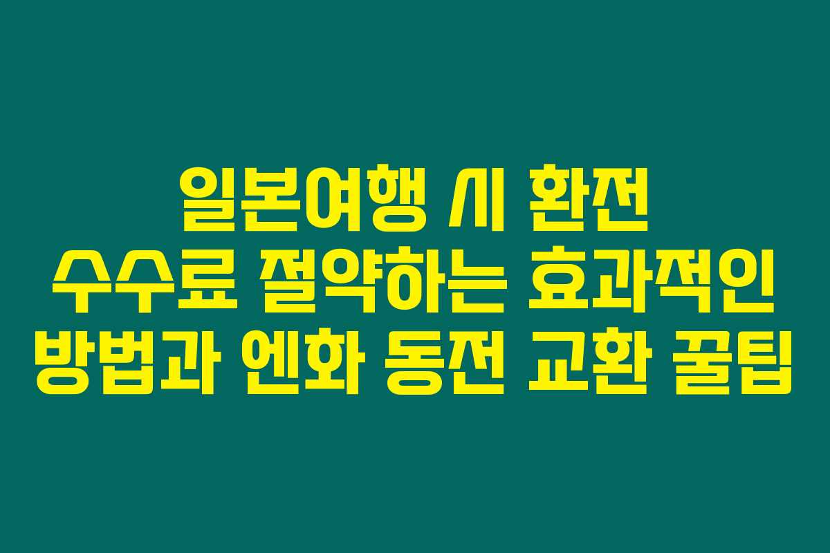 일본여행을 계획 중이라면 환전 수수료로 인해 여행 경비가 낭비되는 일은 피하고 싶지 않으신가요? 그렇다면 아래를 읽어보시면 일본에서 환전할 때 수수료를 절약하는 방법과 엔화 동전 교환 꿀팁에 대해 알아볼 수 있어요. 여러분의 여행 경비를 훨씬 더 효율적으로 관리할 수 있습니다.