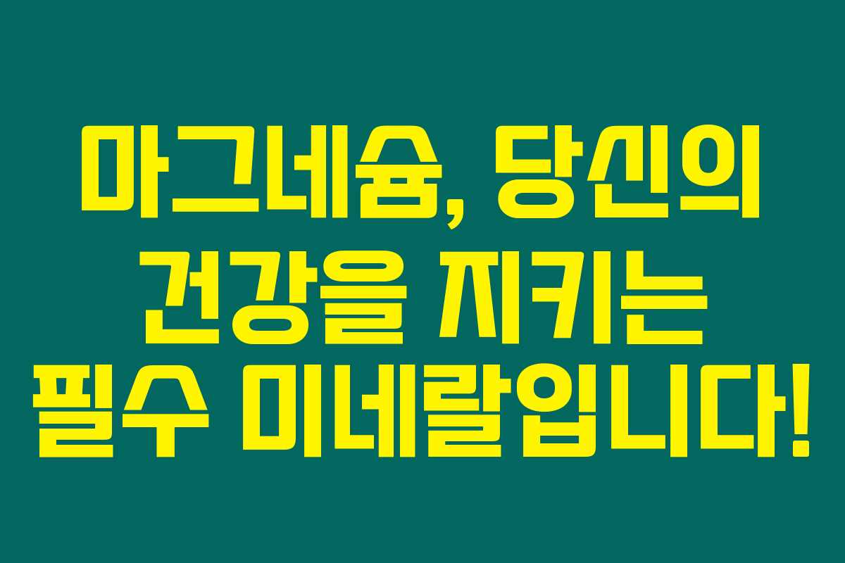 마그네슘은 우리의 건강을 지키는 필수 미네랄이에요. 충분한 마그네슘 섭취를 통해 불면증, 우울증, 만성 피로를 회복하고 건강을 지켜보세요! 건강한 삶을 위해 앞으로도 마그네슘에 관심을 가져보는 것이 좋겠어요.