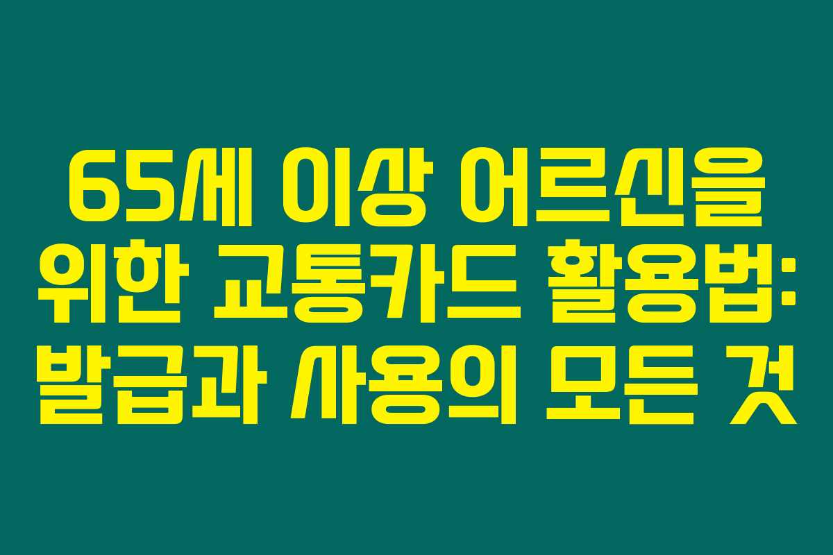 65세 이상 어르신들에게 제공되는 교통카드 혜택은 다양합니다.